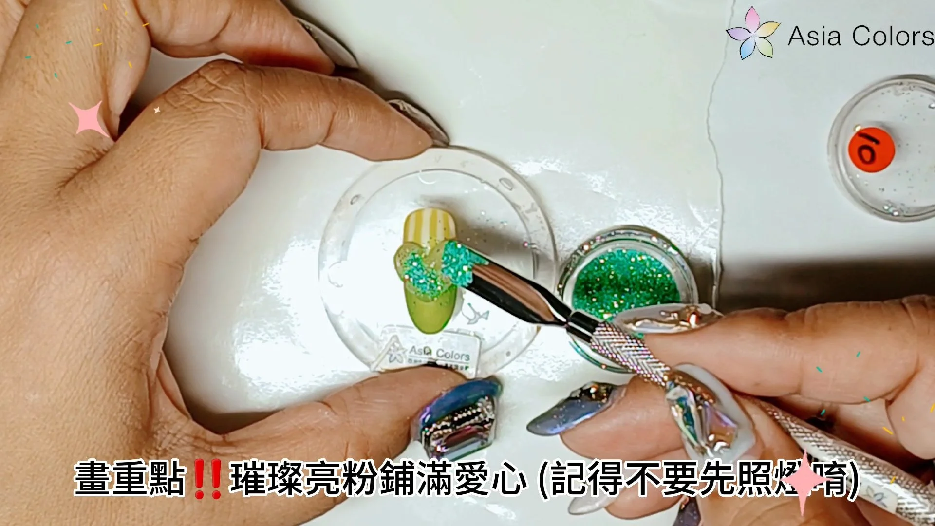 可以使用亞洲色彩的璀璨亮粉灑在上面唷