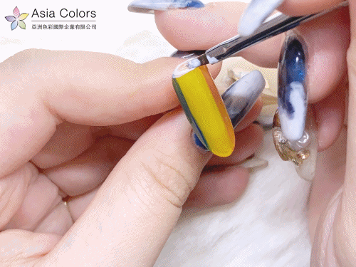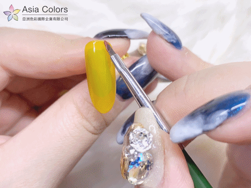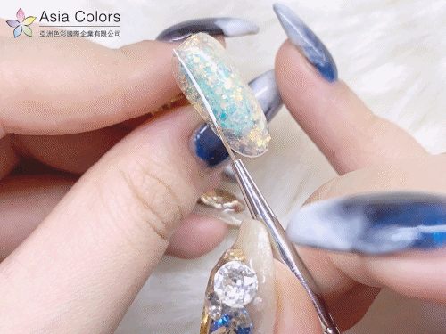 接著使用這支小斜筆去挖取星辰膠,局部做刷色亮片效果