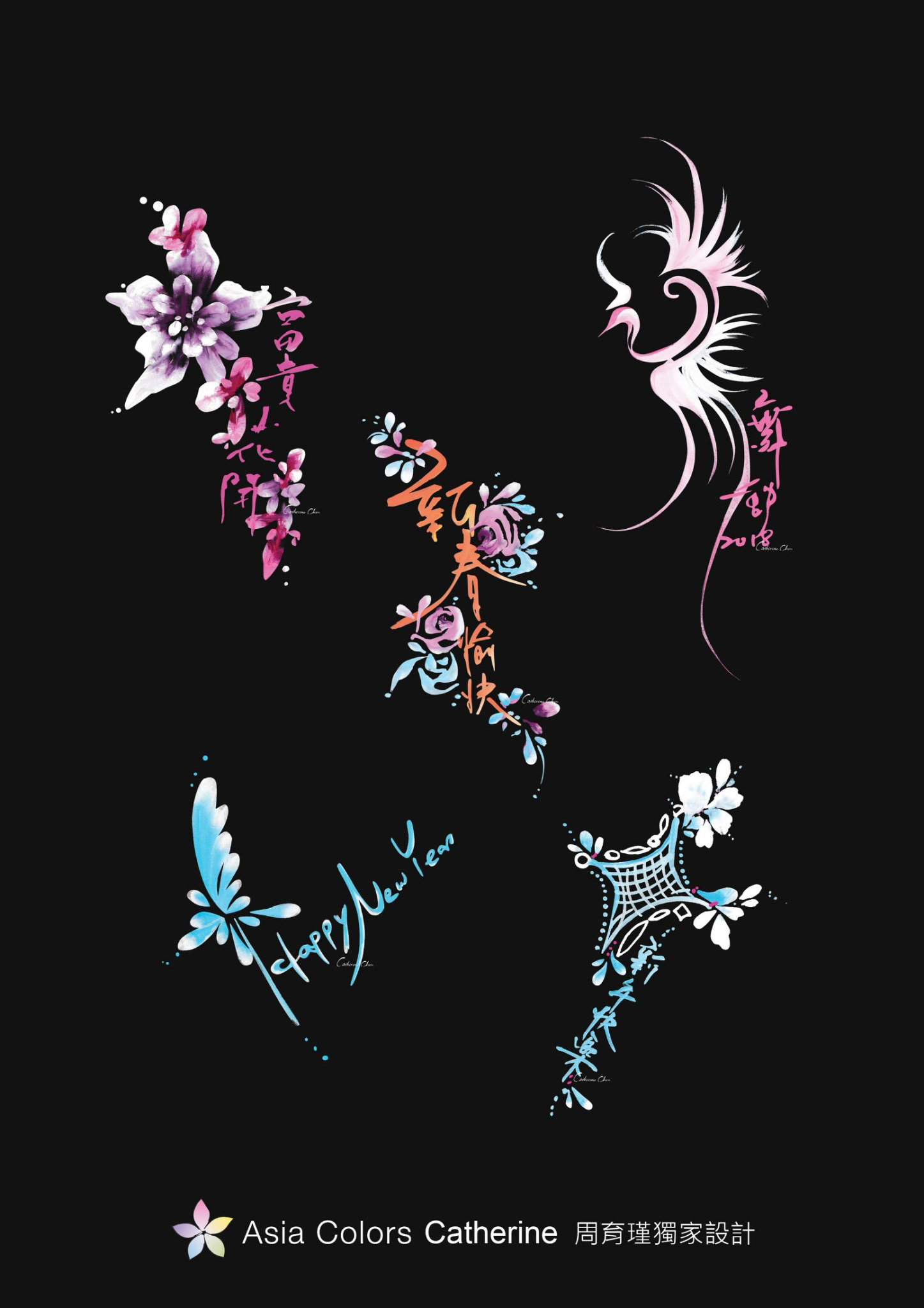 新的一年到來,亞洲色彩周育瑾總經理也彩繪設計了非常有新年氣息的五款彩繪圖案~